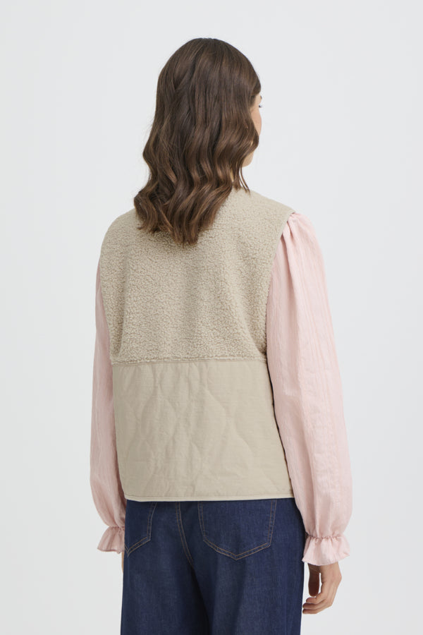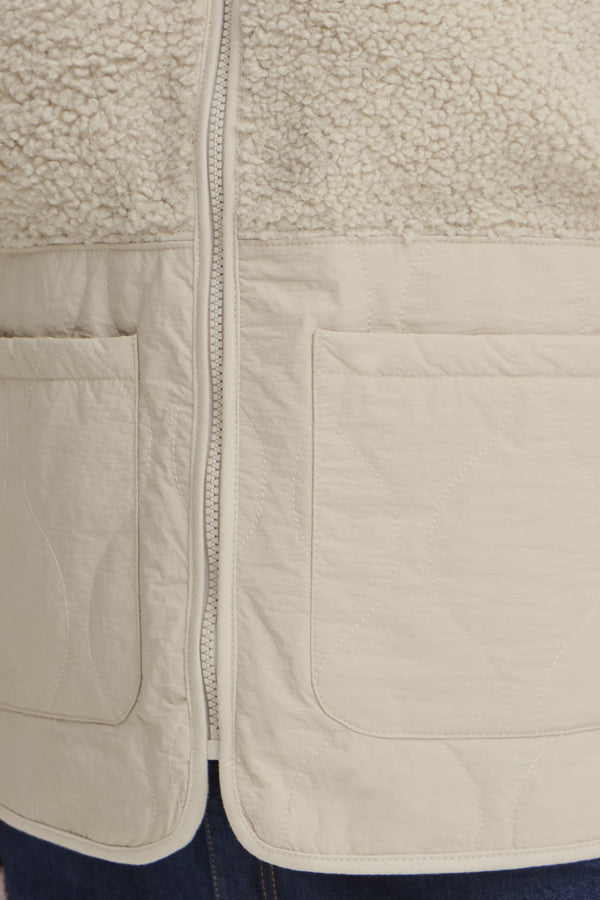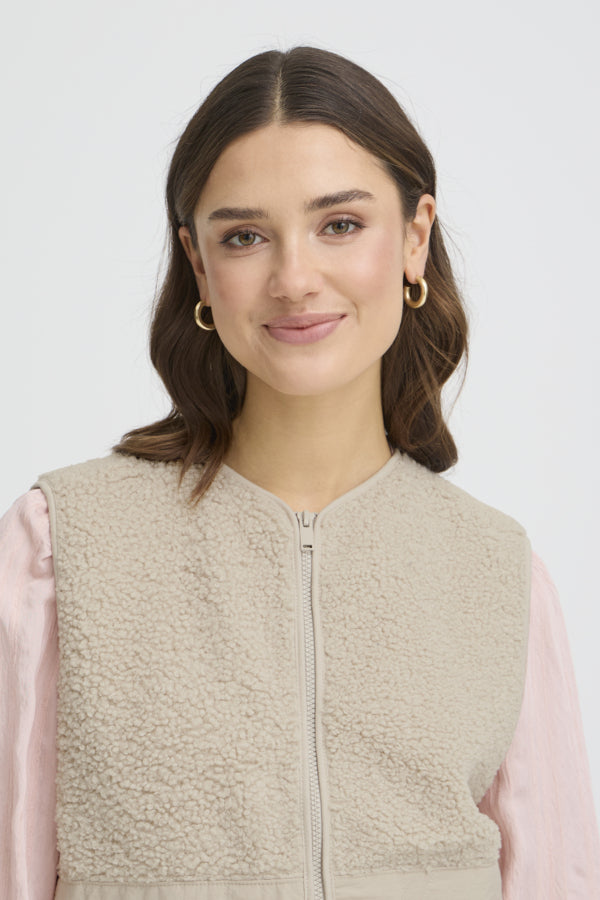 The Fransa Mikala waistcoat has two different textures of fabric giving it a modern twist. The bottom half has a quilted detail and two large pockets. The front has a full zip fastening. This is a great layering piece and can be worn over jumpers and t-shirts making it the perfect piece for your Spring wardrobe.