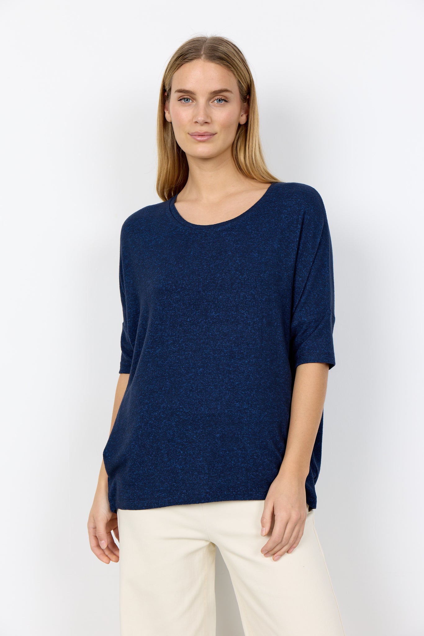 The Soyaconcept Biara 96 jumper comes in a beautifully soft Viscose fabric. It has 3/4 length sleeves, a round neck and scooped hem at the back. It has a loose fit for extra comfort and looks great paired with jeans or wide leg trousers. Also available in other colours.
